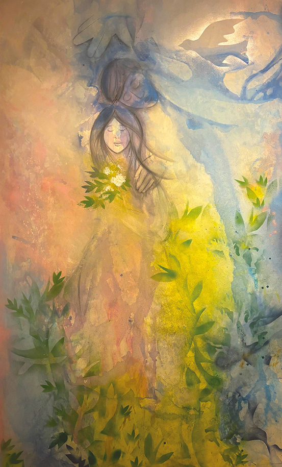 Dvora Barzilai: Mächtige Wasser vermögen nicht zu löschen die Liebe (Hohelied 8, 7), 2025, 145 x 195 cm, Mischtechnik auf Leinwand